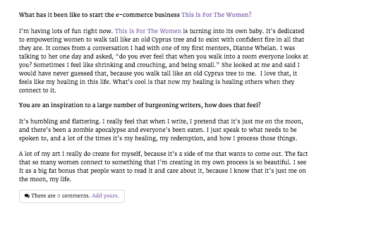 What has it been like to start the e-commerce business This Is For The Women?